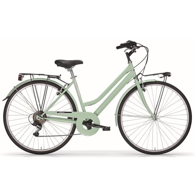 De Damesfiets 28 Inch MBM Touring Groen is een stijlvolle en comfortabele stadsfiets van het Italiaanse merk MBM – My Best Move. Dit merk staat bekend om zijn hoogwaardige fietsen met een verfijnd Italiaans design en een uitstekende afwerking. De MBM Touring is samengesteld met onderdelen van topfabrikanten, wat zorgt voor betrouwbaarheid, duurzaamheid en een soepele rijervaring. Dankzij het lichte frame is deze damesfiets wendbaar en prettig in gebruik, ideaal voor dagelijks fietsen in de stad.