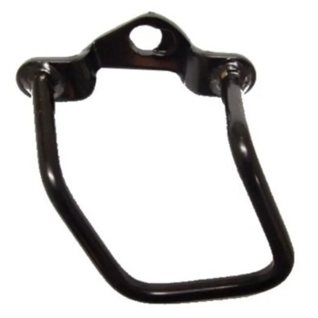 De zwarte metalen derailleur beschermer wordt gemonteerd op een 10 mm as.