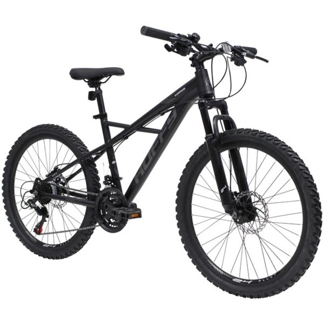 De Huffy Mountainbike 24 Inch Korros Zwart is de ideale keuze voor jonge rijders die zowel offroad trails als stedelijke routes willen verkennen. Dankzij de verende voorvork en de schijfremmen voor én achter behoud je maximale controle op ruw terrein en tijdens hoge snelheden. Met de 21 Shimano versnellingen schakel je soepel en bedwing je zonder moeite zelfs de zwaarste beklimmingen. Het stoere, sportieve design geeft de Korros een robuuste uitstraling die perfect past bij avontuurlijke fietsers.