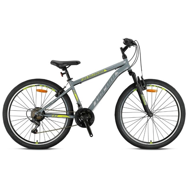 De Geroni Jongens Mountainbike 24 Inch Magnum 21 Versnellingen Grijs combineert sportieve prestaties met betrouwbare kwaliteit. Als nevenmerk van het bekende KRON wordt Geroni samengesteld met onderdelen van topfabrikanten in Turkije. Dit model is uitgerust met soepele Shimano versnellingen voor én achter, en voorzien van stevige noppenbanden die optimale grip bieden op zowel verharde als onverharde paden.